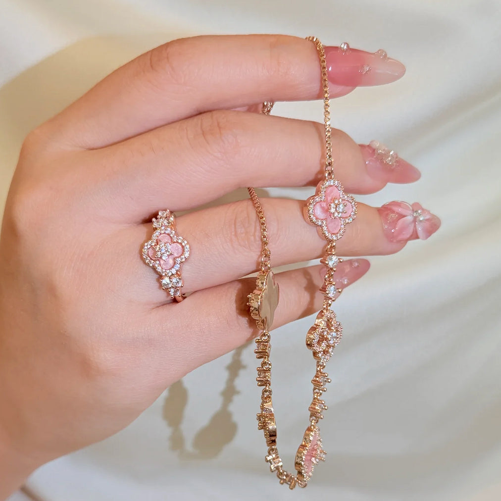 The Sakura Cleef Bracelet blends floral grace with sparkling energy, symbolizing love, luck, and feminine strength.